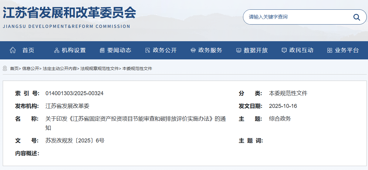 據(jù)悉,該實施辦法將于2025年11月16日正式生效,實施期限至2030年11月15日,原《江蘇省固定資產(chǎn)投資項目節(jié)能審查實施辦法》(蘇發(fā)改規(guī)發(fā)﹝2023﹞8號)同時廢止。