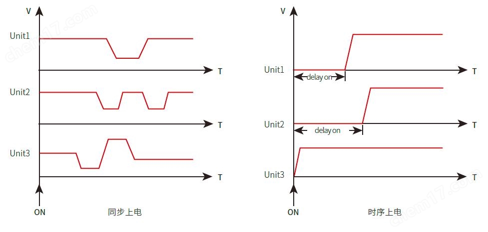該功能應用為多機輸出時序控制,例如用同一信號觸發(fā)輸出,設置不同的On Delay/ Off Delay即可實現毫秒級時序控制輸出。
