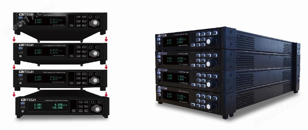 IT-M3100采用不同于ITECH以往的外觀,配合側面通風設計,靈活的模塊式架構可以輕松的將IT-M3100系列進行直接疊放,無需再選購任何配件,開放式的讓用戶任意組合,就像積木堆疊一樣簡易方便。