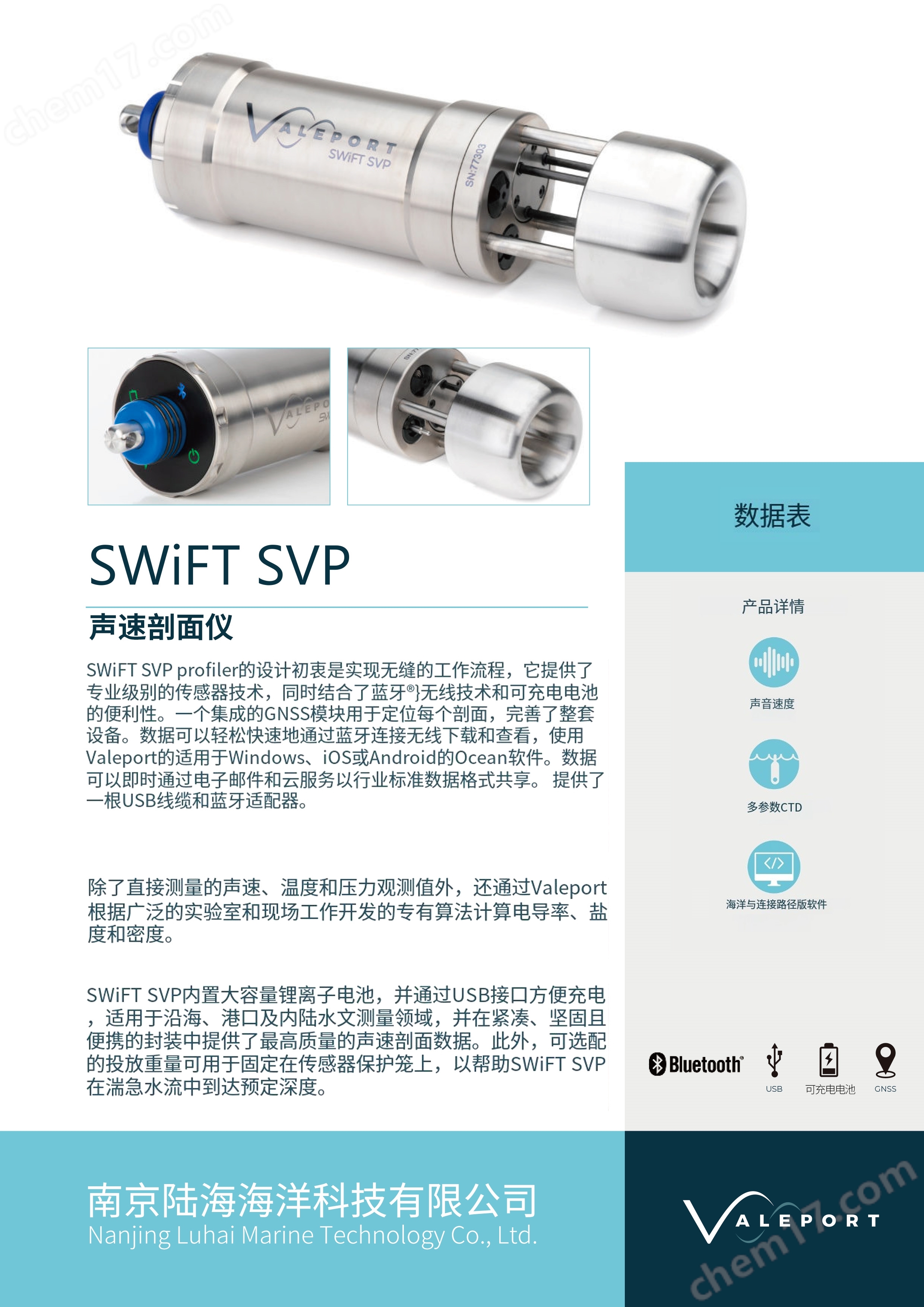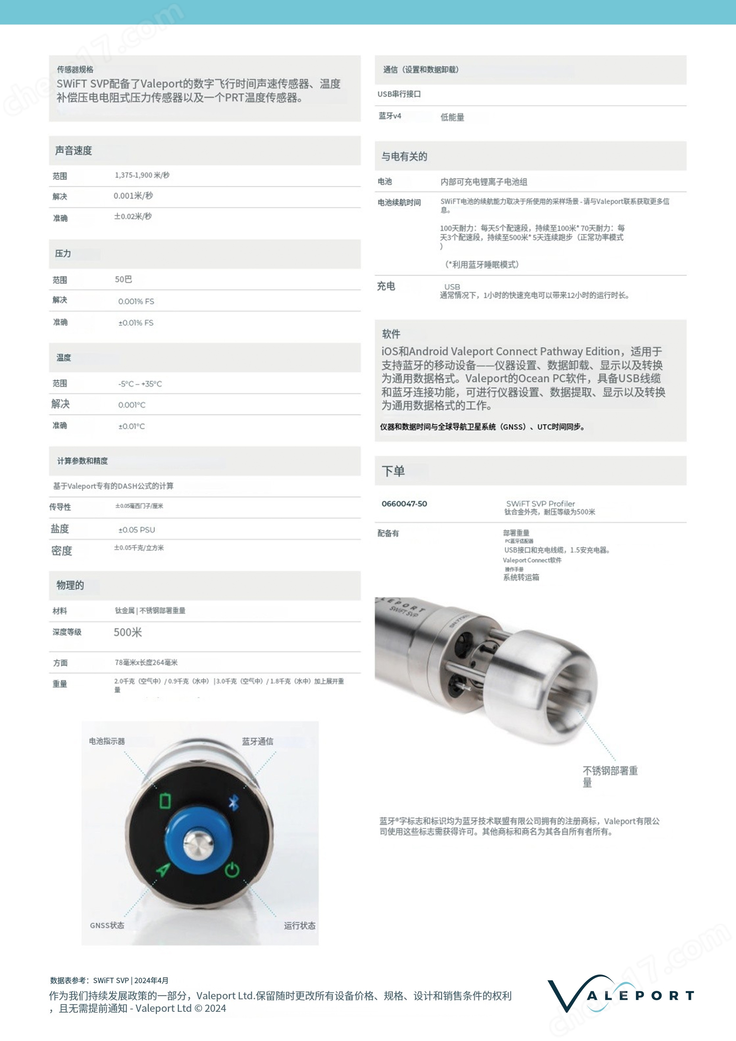 Valeport SWiFT SVP聲速剖面儀的核心技術(shù)參數(shù)與功能如下: