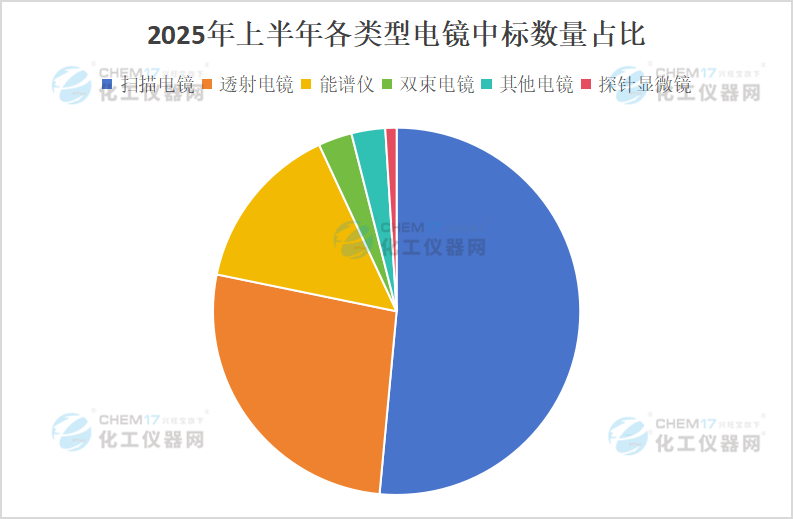 結(jié)合“2025年7月各類型電鏡采購(gòu)情況”數(shù)據(jù)來(lái)看,掃描電鏡是2025年上半年飽受市場(chǎng)歡迎程度較高的電鏡類型,中標(biāo)數(shù)量為52臺(tái)/套,中標(biāo)金額為18811.65萬(wàn)元;其次是透射電鏡,中標(biāo)數(shù)量為27臺(tái),中標(biāo)金額為28880.99萬(wàn)元。