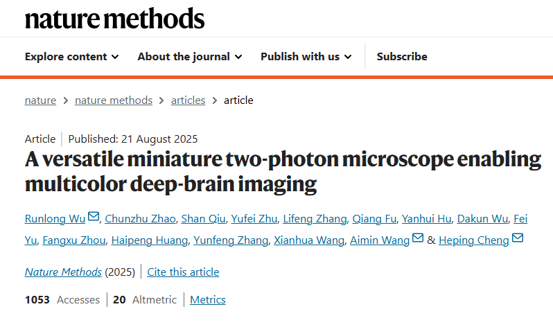 近日,我國科學(xué)家成功自主研制出僅重2.6克的新一代多色微型化雙光子顯微鏡,首次在自由活動(dòng)的小鼠腦中實(shí)現(xiàn)了高分辨率深區(qū)多色同時(shí)成像。該成果于8月21日在國際學(xué)術(shù)期刊《自然-方法》(Nature Methods)上在線發(fā)表,論文題為《A versatile miniature two-photon microscope enabling multicolor deep-brain imaging》。