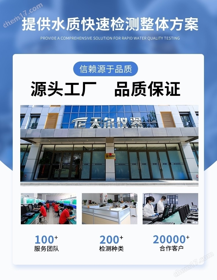 可廣泛應(yīng)用于飲用水、自來水、疾控、環(huán)保部門、城市供水、純凈水廠、飲料廠、化工、制藥、食品等領(lǐng)域中水質(zhì)污染物的快速檢測.