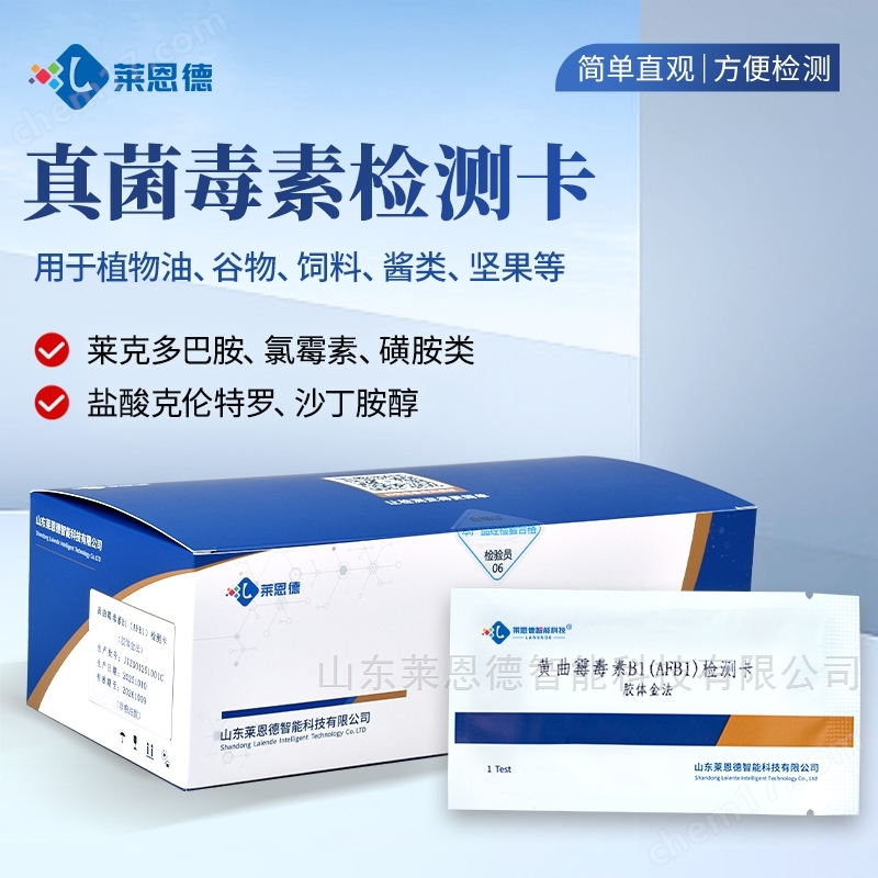 山東萊恩德生產(chǎn)的總黃曲霉毒素檢測(cè)卡-真菌毒素速測(cè)卡為定性檢測(cè),應(yīng)用于飼料及飼料原料中的總黃曲霉殘留檢測(cè)。適用于現(xiàn)場(chǎng)監(jiān)控和大量樣本篩查。